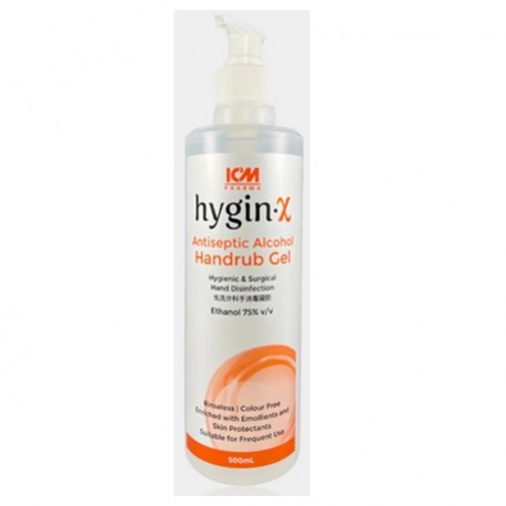 Hygin-X Antiseptic Handrub Gel is a no rinse, non sticky and enriched with moisturiser formula suitable for frequent use. It is a ready to use alcohol handrub for hygienic and surgical hand disinfection.