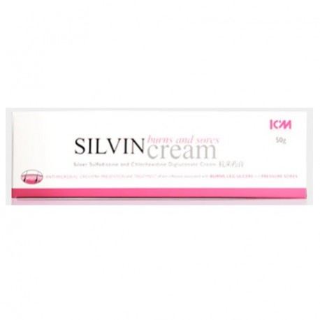 ICM Pharma Silvin Cream is an antimicrobial cream containing Silver Sulfadiazine and Chlorhexidine for the prevention and treatment of skin infection associated with burns, leg ulcers and pressures sores.